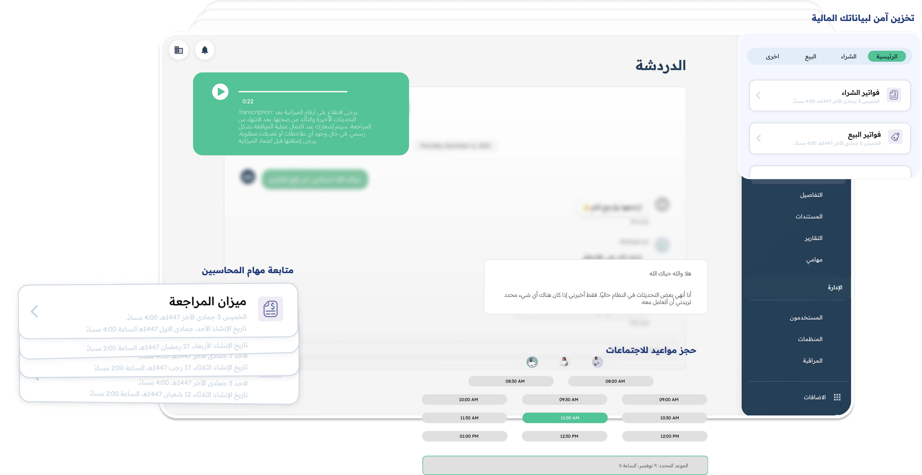 نلتزم باتفاقية مستوى خدمة تضمن استمرارية المحاسب أو توفير بديل خلال 24 ساعة. جميع البيانات مملوكة لك ومحفوظة في خوادم آمنة، ويمكنك عند انتهاء الخدمة تصدير بياناتك في أي وقت بصيغ إلكترونية مثل إكسل وملفات بي دي إف
